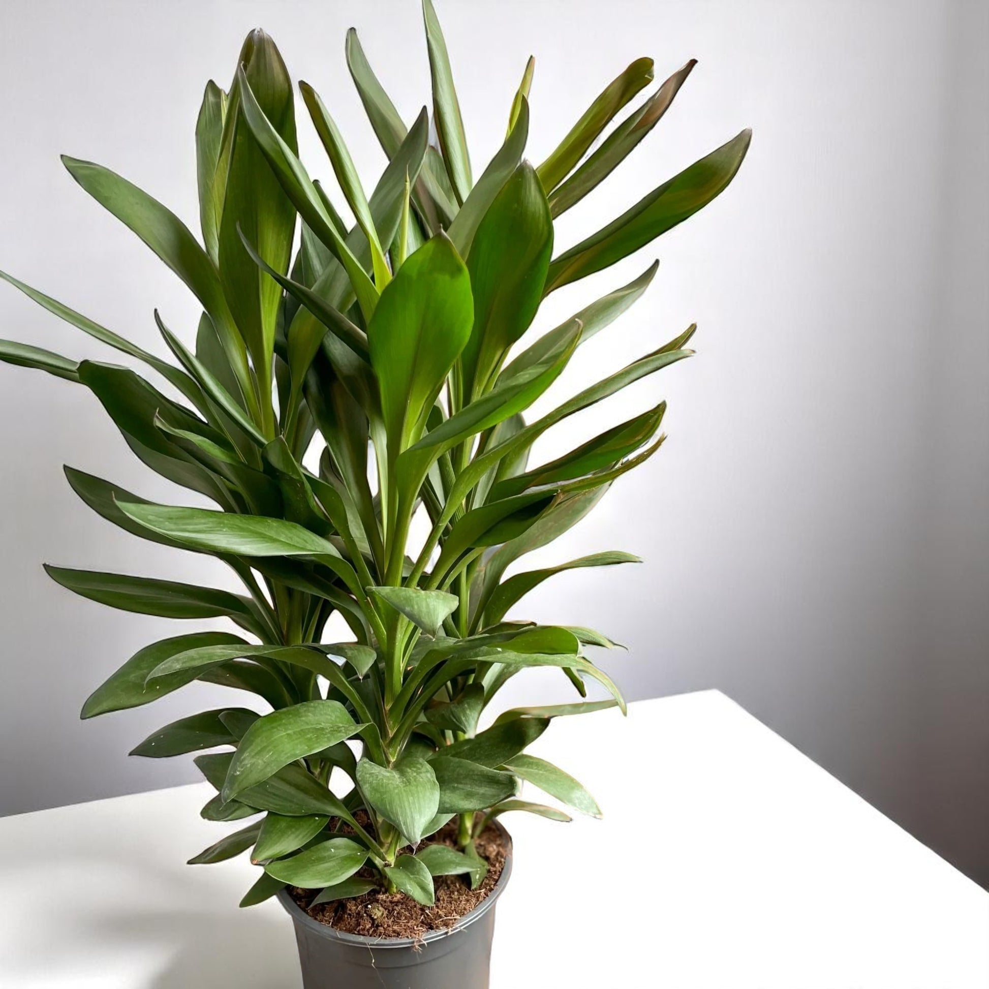 نبتة استوائية مدمجة وذات نمو عمودي، بأوراق أنيقة على شكل رمح ولون أخضر زمردي داكن. تضيف لمسة عصرية ومنعشة إلى المساحات الداخلية والأماكن الخارجية المظللة.