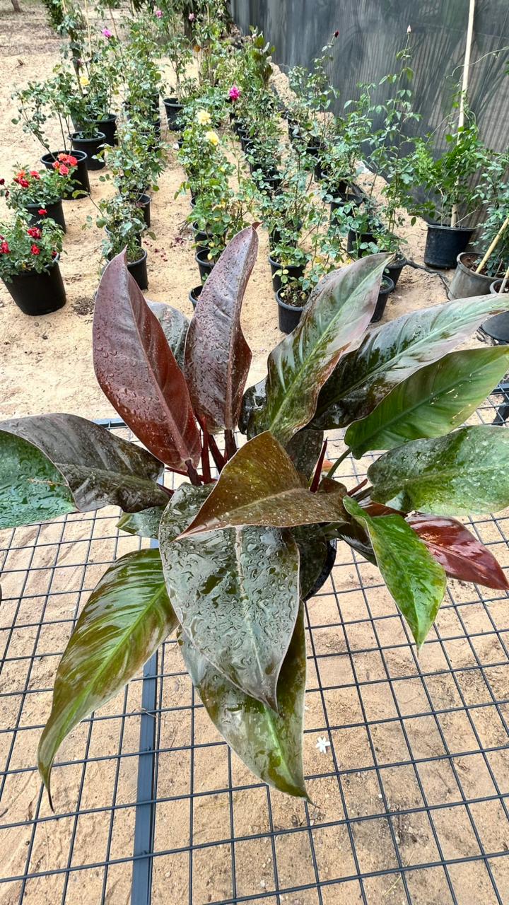 نبتة استوائية لافتة للنظر تتميز بأوراق لامعة ذات لون أحمر داكن إلى خمري تتحول تدريجياً إلى اللون الأخضر مع نضوجها؛ معروفة بأوراقها الجريئة والجذابة.