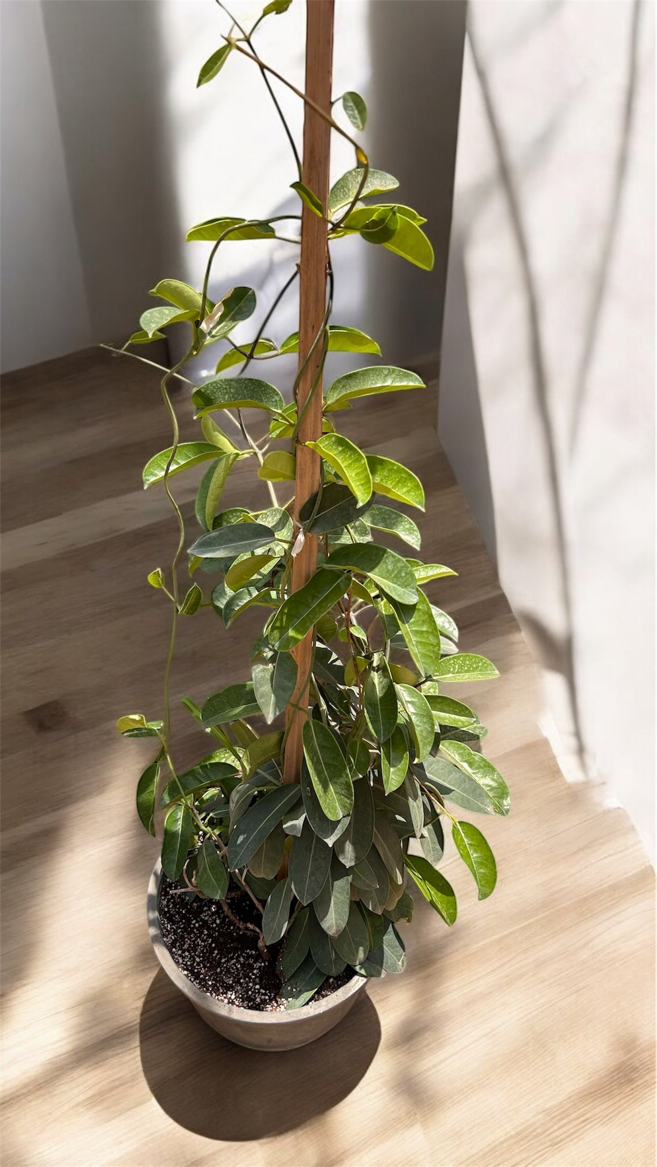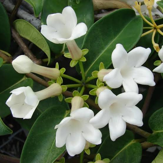 إنها نبتة متسلقة جميلة جداً، تُزرع لأوراقها اللامعة ذات اللون الأخضر الداكن وأزهارها العطرة ذات الرائحة الجميلة.