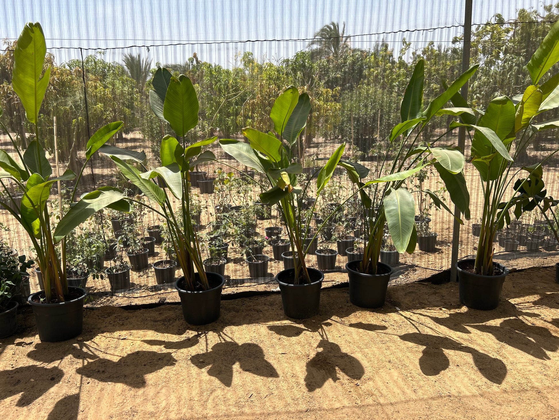 نخلة أوغوستا (Strelitzia nicolai) هي نبتة استوائية تتميز بأوراقها الكبيرة المستقيمة التي تشبه المجاديف، مما يمنحها مظهرًا يشبه النخيل. تضيف لمسة خضراء كثيفة وجريئة للمساحات الداخلية والخارجية، وقد تُنتج أزهارًا مذهلة باللونين الأبيض والأزرق على شكل طائر عند نضجها. مثالية لخلق أجواء عصرية واستوائية.