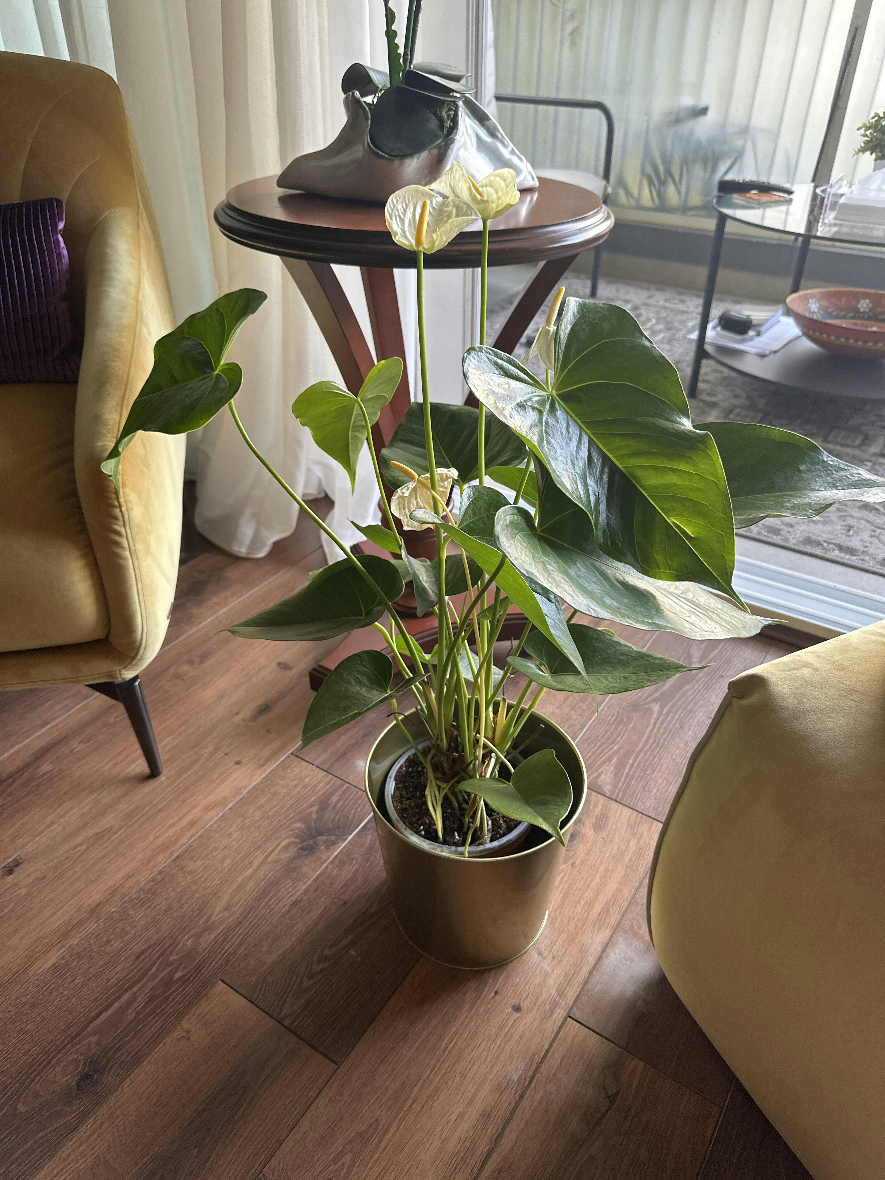 Rare and luxurious indoor plant known for its striking, white blooms. Its glossy, dramatic flowers and elegant green foliage make it a stunning statement piece in any modern home or office.